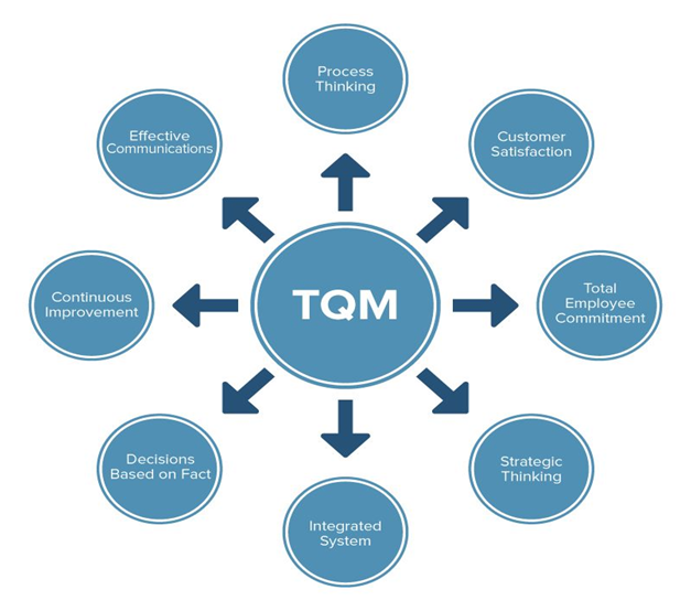 Total Quality Management (TQM): A management approach to long-term success through customer satisfaction. In a TQM effort, all members of an organization participate in improving processes, products, services, and the culture in which they work. Also it is a system of management based on the principle that every member must be committed to maintaining high standards of work in every aspect of a company's operations.